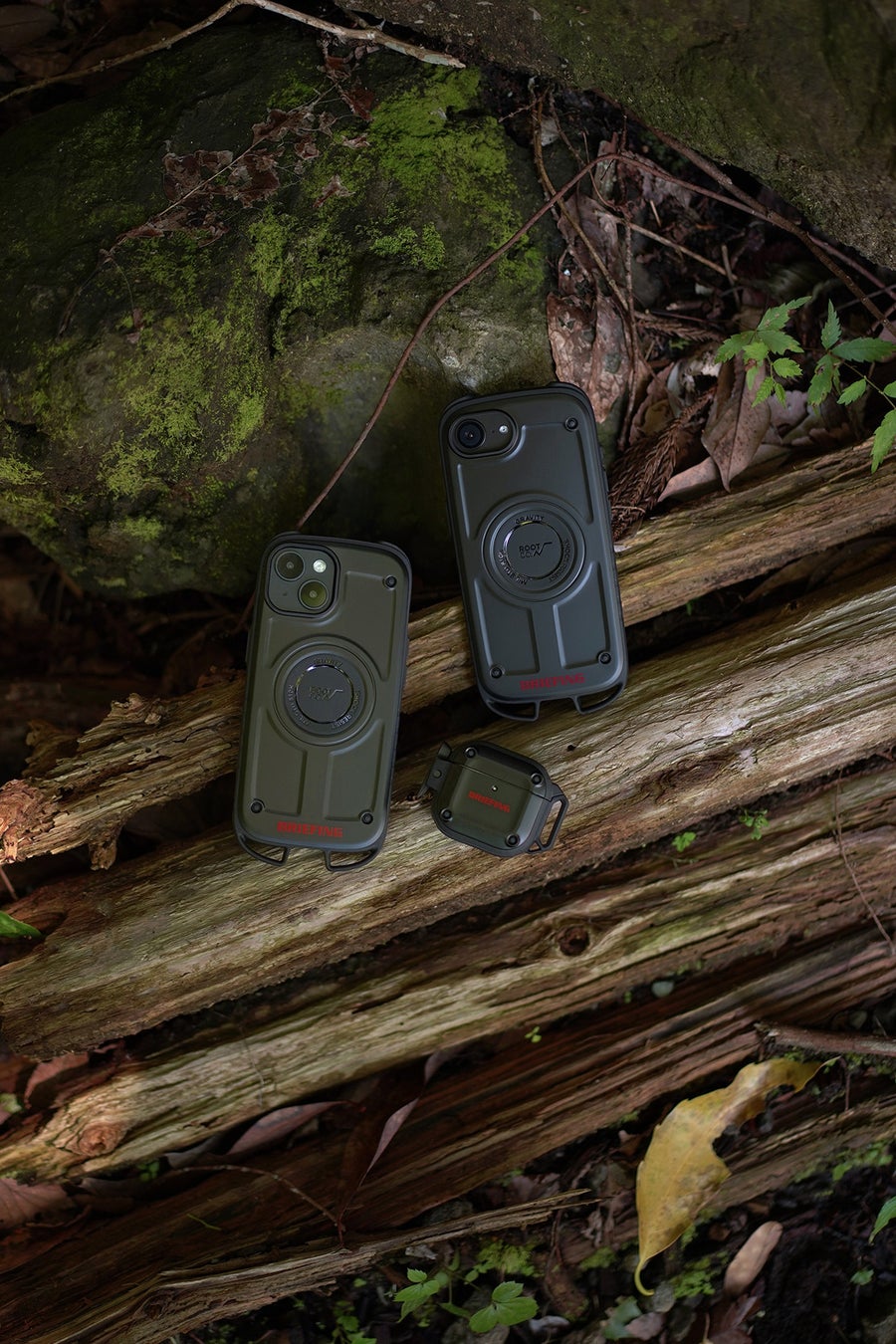 「Shock Resist Case Rugged. for iPhone」「Shock Resist Case Pro. for AirPods」に、BRIEFINGのロゴを配した特別仕様。