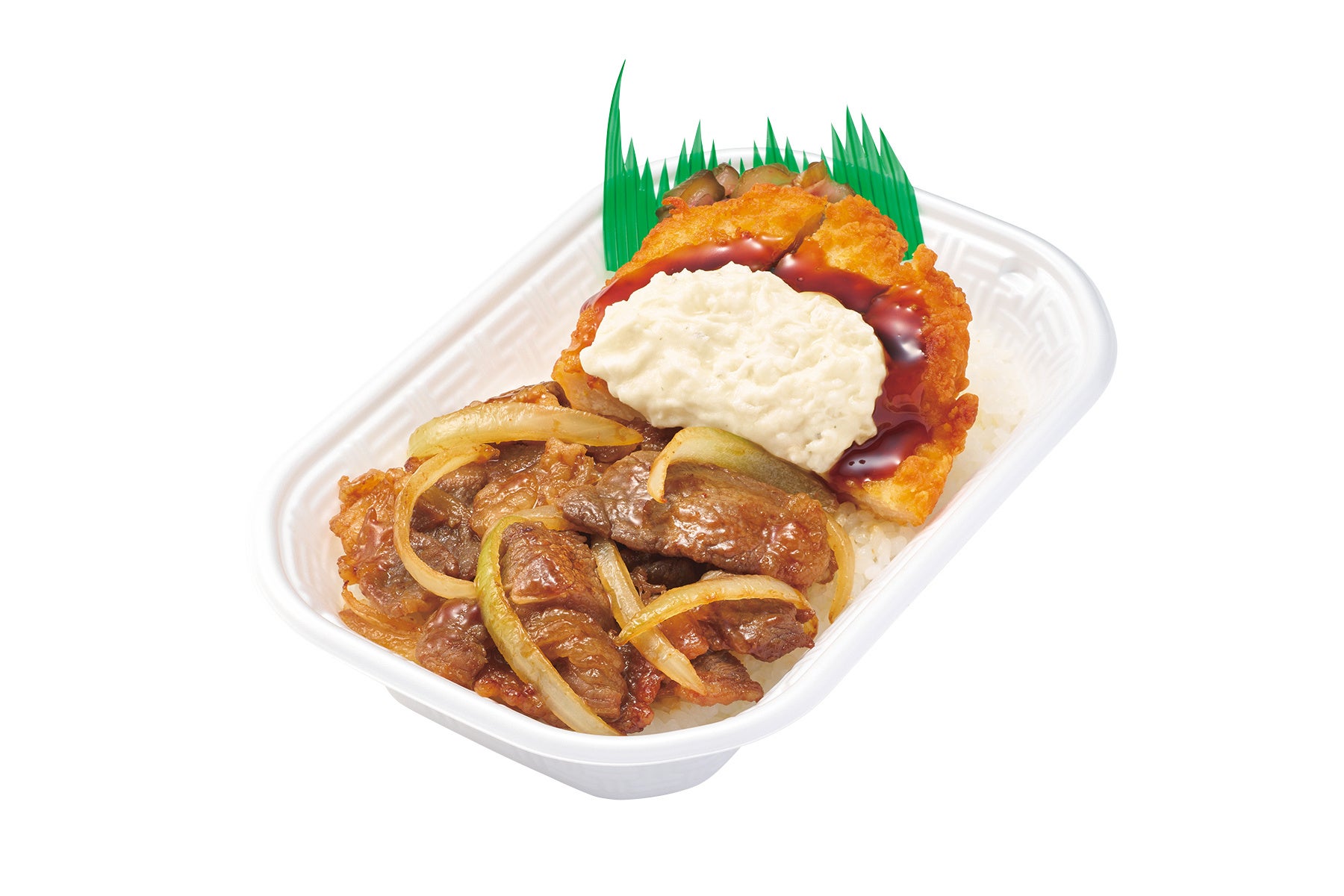 ハーフサイズのチキン南蛮に、牛焼肉を合わせたお手ごろ価格のお弁当。九州エリア限定の販売です。