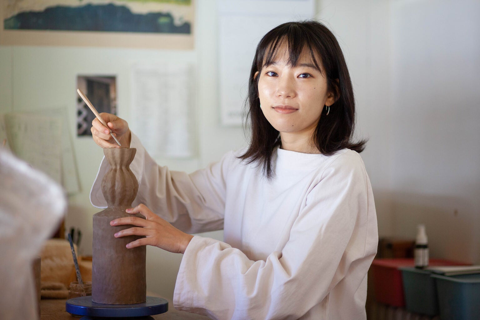 ロンドン芸術大学卒業の経歴を持ち、長崎を拠点に活動するセラミックアーティスト。故郷である日本、イギリスや東西ヨーロッパの暮らしの中で見てきた、景色、生きた植物、マーケットに並ぶ野菜や博物館の民芸品、建築物といったものをモチーフに陶芸作品を手掛ける。