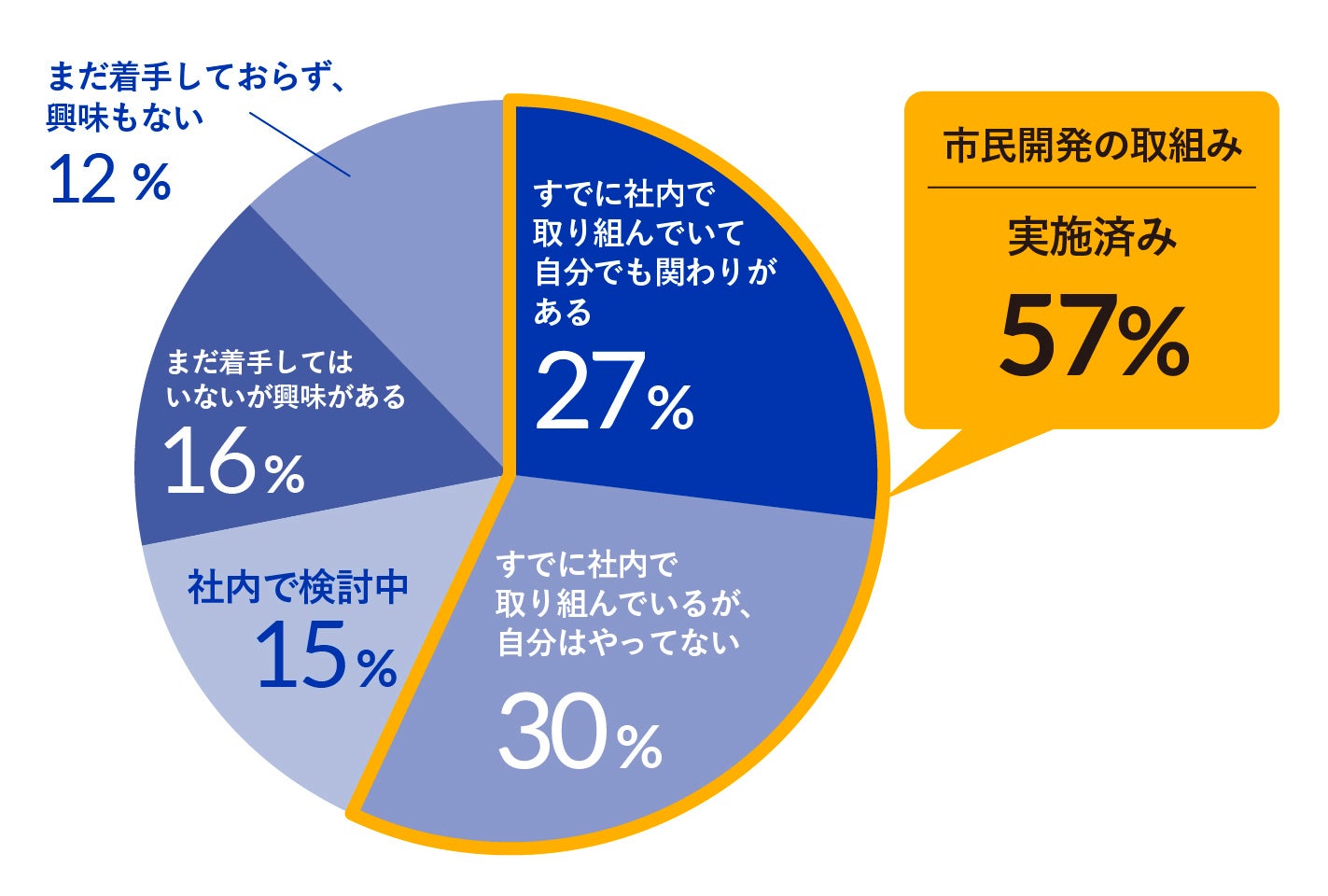 ■約6割(57%)の企業が「市民開発」への取り組みを開始