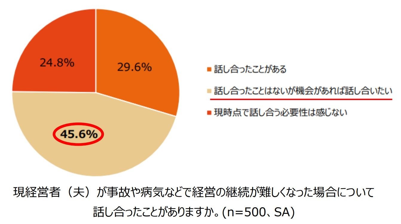 (*2020年10月26日エヌエヌ生命保険株式会社プレスリリース「全国中小企業経営者の「配偶者」の意識調査 ~ 約半数の配偶者が、経営の継続について話し合いたいと思いつつ話し合えていない ~」(https://www.nnlife.co.jp/pedia/research/20201026)より)