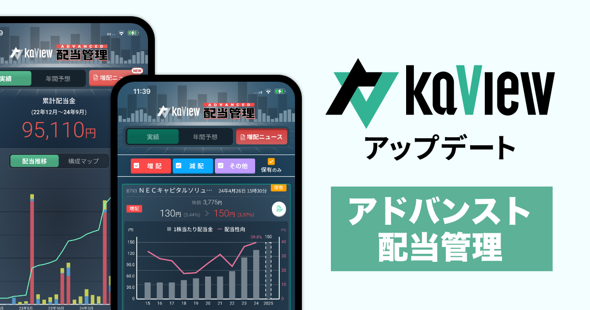 株式投資 管理・分析アプリ『カビュウ』 - 配当金 管理・分析の決定版「アドバンスト配当管理」をリリース!さらに「資産推移」をアップデート