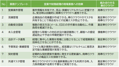 『奉行クラウド×CELF』をお客様に提供するにあたり、多くのお客様が課題と感じられている8つの業務領域に対して、課題解決テンプレートを無料で提供いたします。