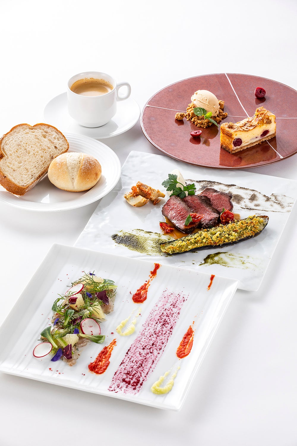 本展覧会の目玉作品の一つであるドイツの現代作家ゲルハルト・リヒターの絵画のイメージや出身地をテーマとして、様々な食材を用いたコース料理をご用意しました。絵画の余韻に浸りながら、一つひとつのプレートをお楽しみください。