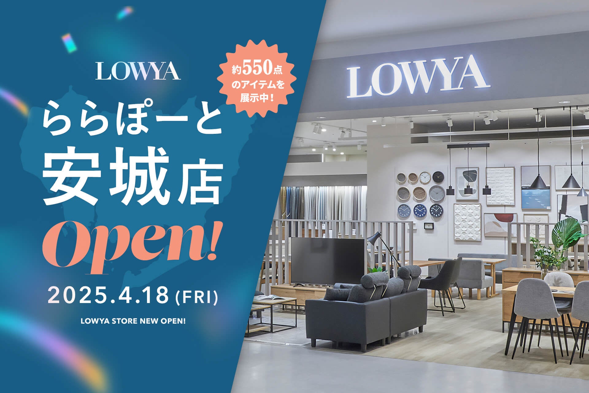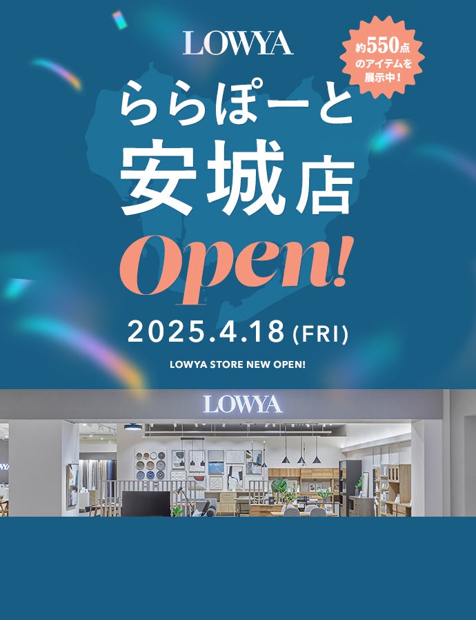 【愛知県2店舗目】EC発の家具・インテリアの「LOWYA」が4月18日(金)ららぽーと安城にOPEN!