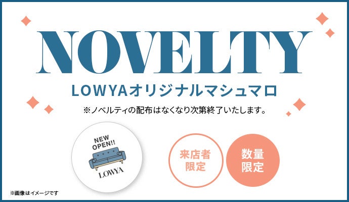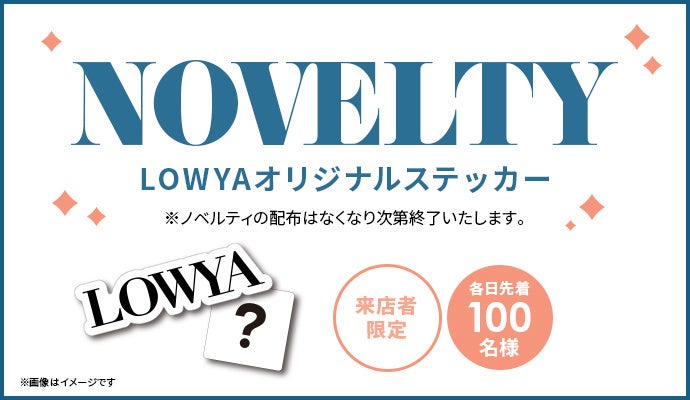 4月18日(金)のオープンを記念して、SNS投稿キャンペーンに参加orアンケートに答えると、LOWYAオリジナルのノベルティ(3種類からランダム)を1点プレゼント!また、ご来店いただいた方にも素敵なノベルティをご用意しています。