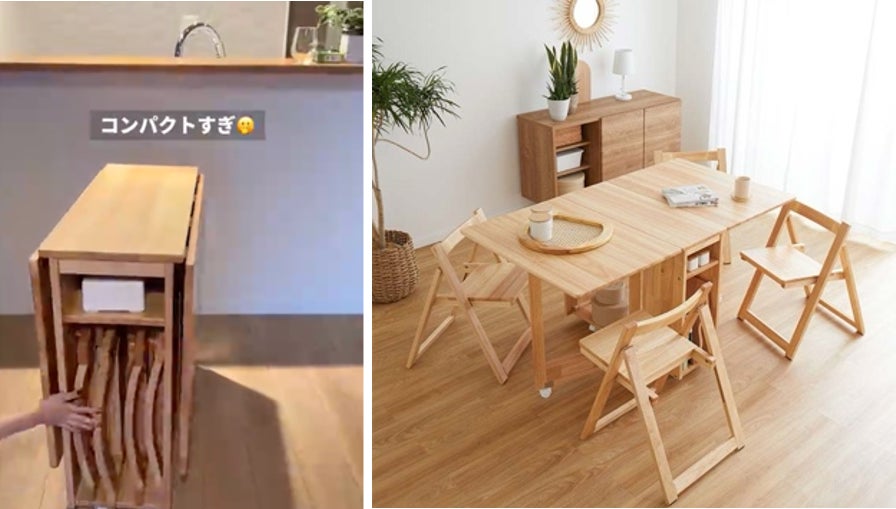 ▼SNSの累計再生回数は脅威の3,000万回!ギミックが光る折りたたみ式4人掛けダイニングテーブル!