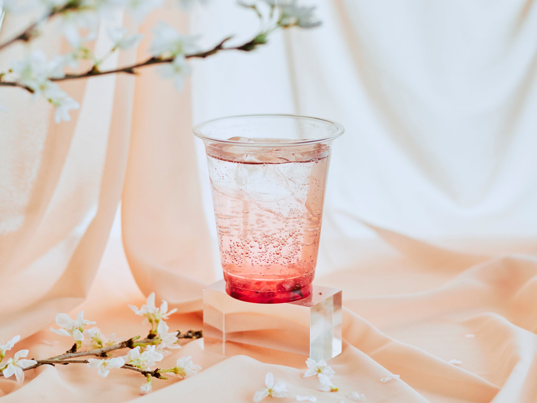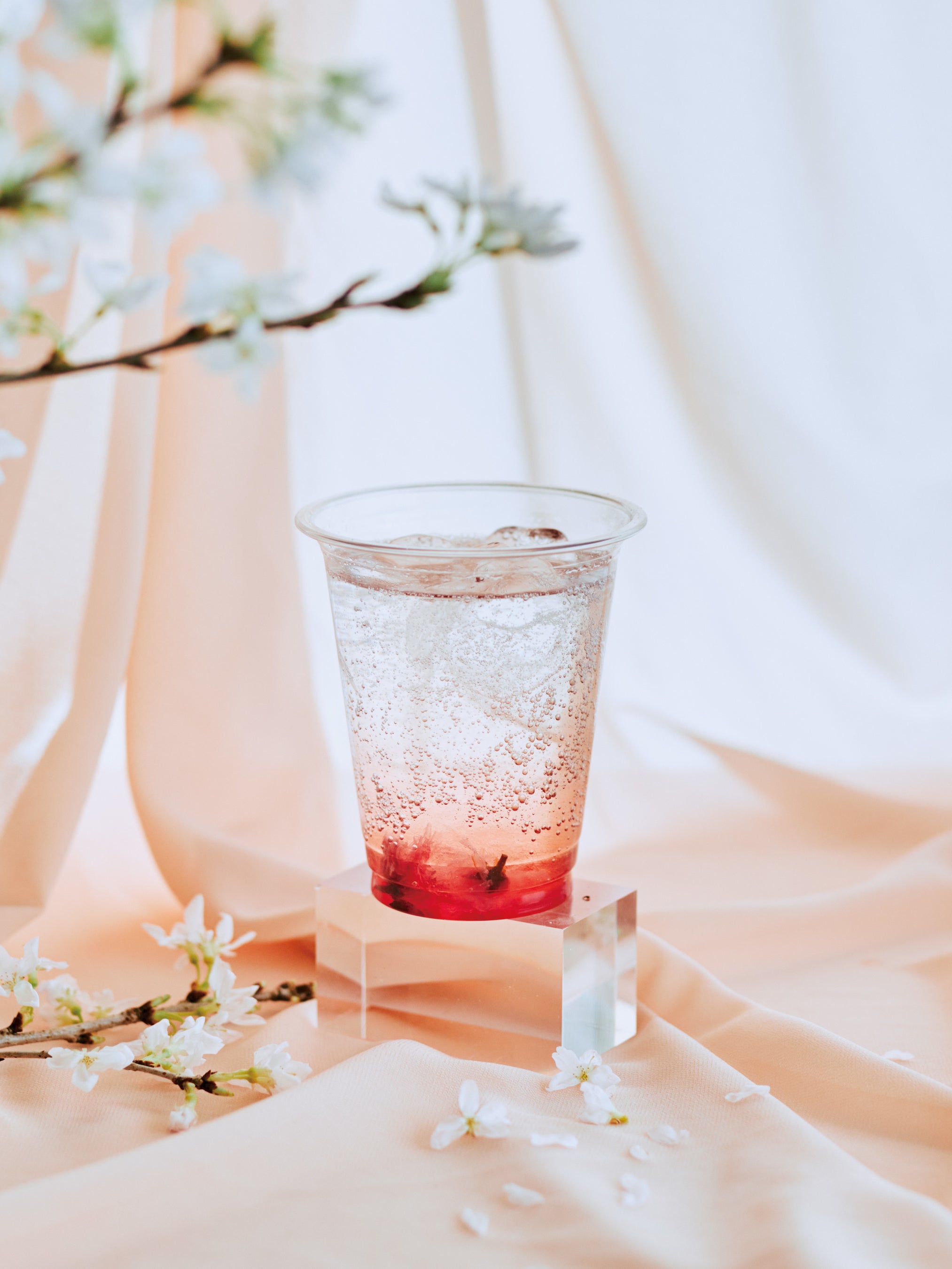 カカオのパルプ(果実部分)から作ったフルーティーなカカオビネガーを、さくらの優しい香りで包んだ、限定ドリンクです。