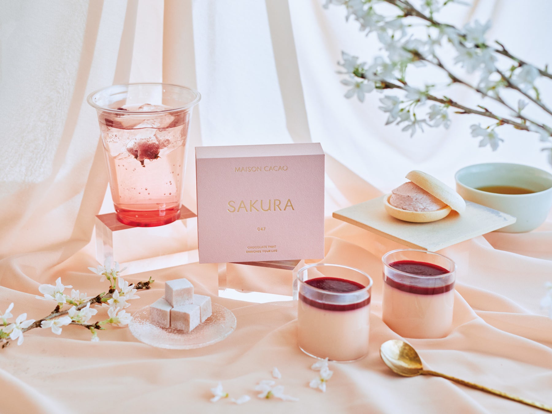 鎌倉発祥のアロマ生チョコレートブランド「メゾンカカオ」(創業者:石原紳伍)は、四季毎の文化を楽しむコレクション「四季とメゾン」を、年間を通してご提案しています。3/16(水)より順次、春のコレクションとして、華やかな桜のスイーツをお届けいたします。春の訪れを感じながら、是非メゾンカカオの各店舗で桜スイーツと共にお花見をお楽しみください。