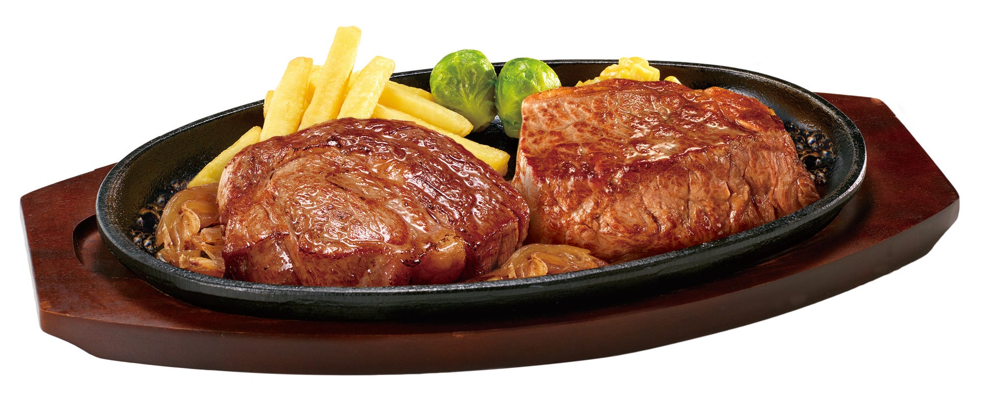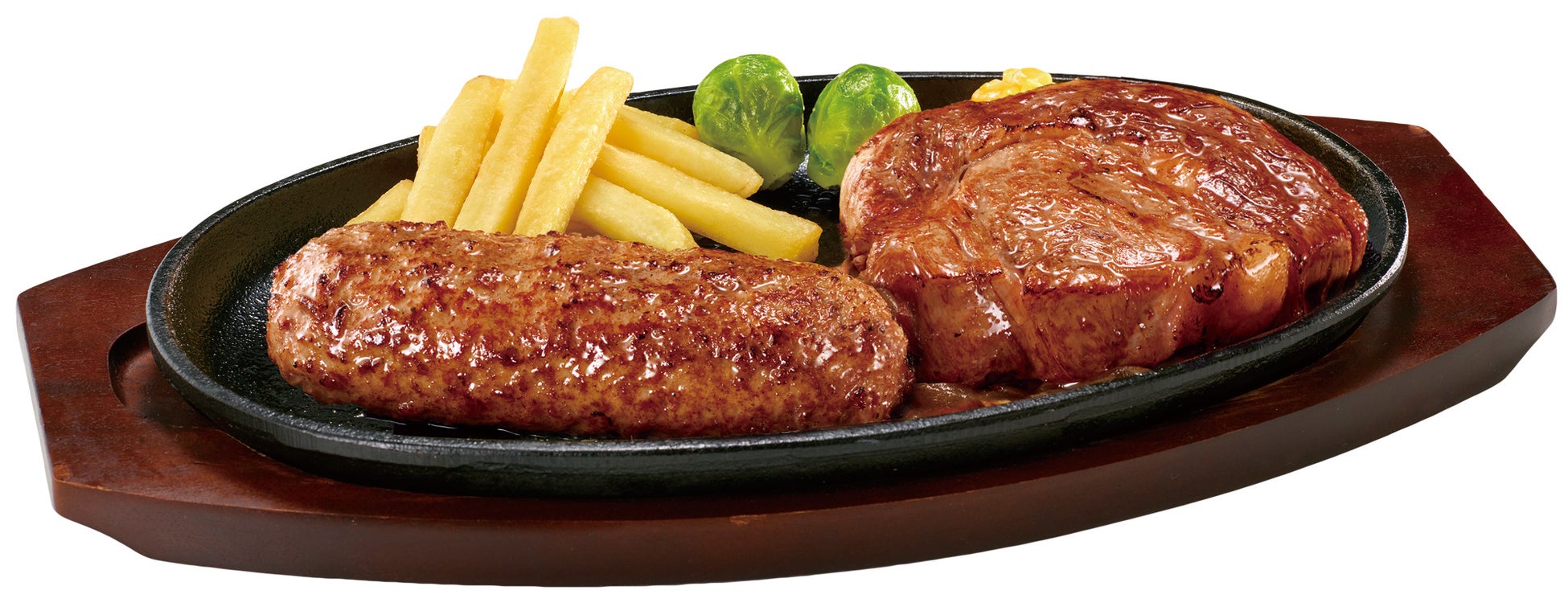 ▼「炭焼き超粗挽きビーフハンバーグ&炭焼きオーシャンビーフリブロースステーキ」