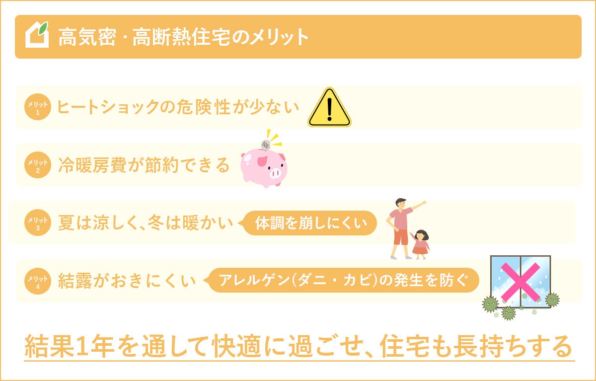 さらに結露によるカビの発生も気密・断熱性能の低さが原因。カビはダニのエサになりアレルゲンとなって、居住者のアレルギーや喘息の発症につながっています。実際に機能性の高い住宅に転居したことで、それらの症状が緩和されたという研究調査が多くあります。