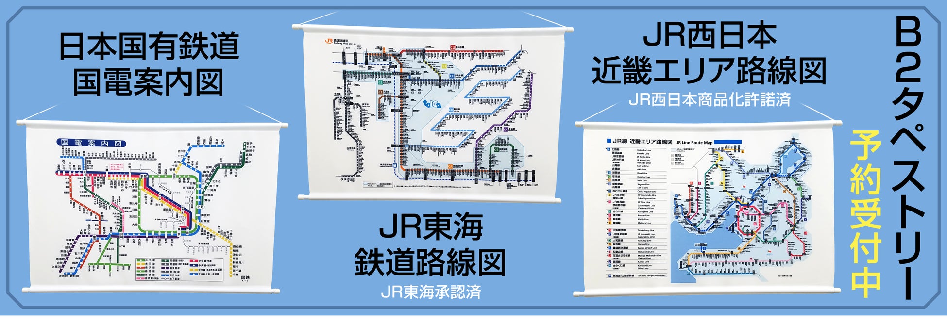 日本国有鉄道(国鉄)・JR東海・JR西日本の鉄道路線図タペストリーを予約販売開始!