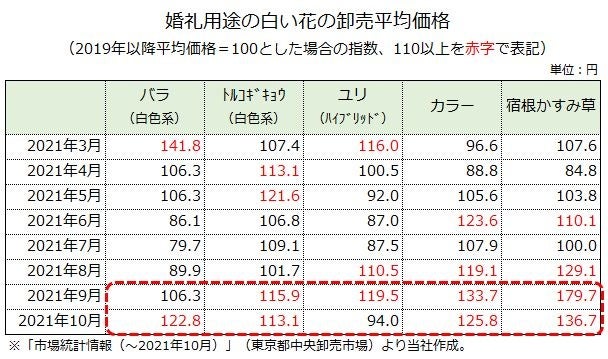 ※「市場統計情報(~ 2021年 10月)」(東京都中央卸売市場)より当社作成