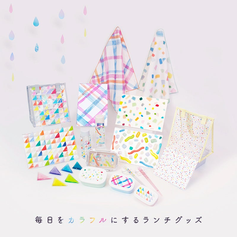アイテムは全部で15種類、レトロで可愛らしいデザインが特徴の「天気雨」様の5つの美しいガラス作品をイメージした ランチグッズシリーズ。
