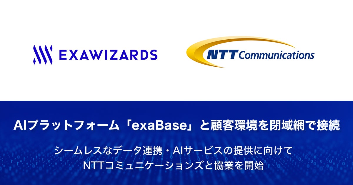 AIを利活用したサービスによる社会課題解決に取り組む株式会社エクサウィザーズ(東京都港区、代表取締役社長:石山 洸、以下「エクサウィザーズ」)は、NTTコミュニケーションズ株式会社(本社:東京都千代田区、代表取締役社長:丸岡 亨、以下「NTT Com」)が提供する次世代インターコネクトサービス「Flexible InterConnect※1」 (以下:「FIC」)等を活用したAIサービスの提供において協業を開始しました。