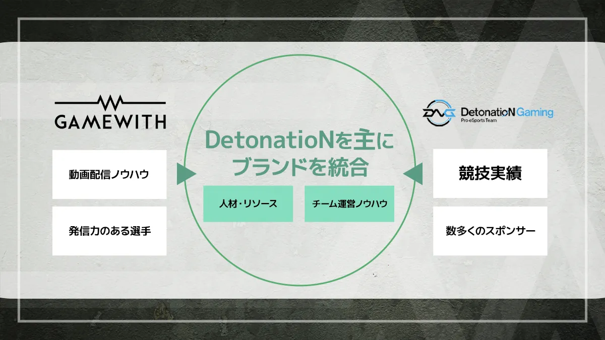 今回の事業統合は、両社の強みを掛け合わせた世界トップレベルのチームを作ることを目的としており、TEAM GAMEWITHとDetonatioN Gamingのブランド統合を目指しています。