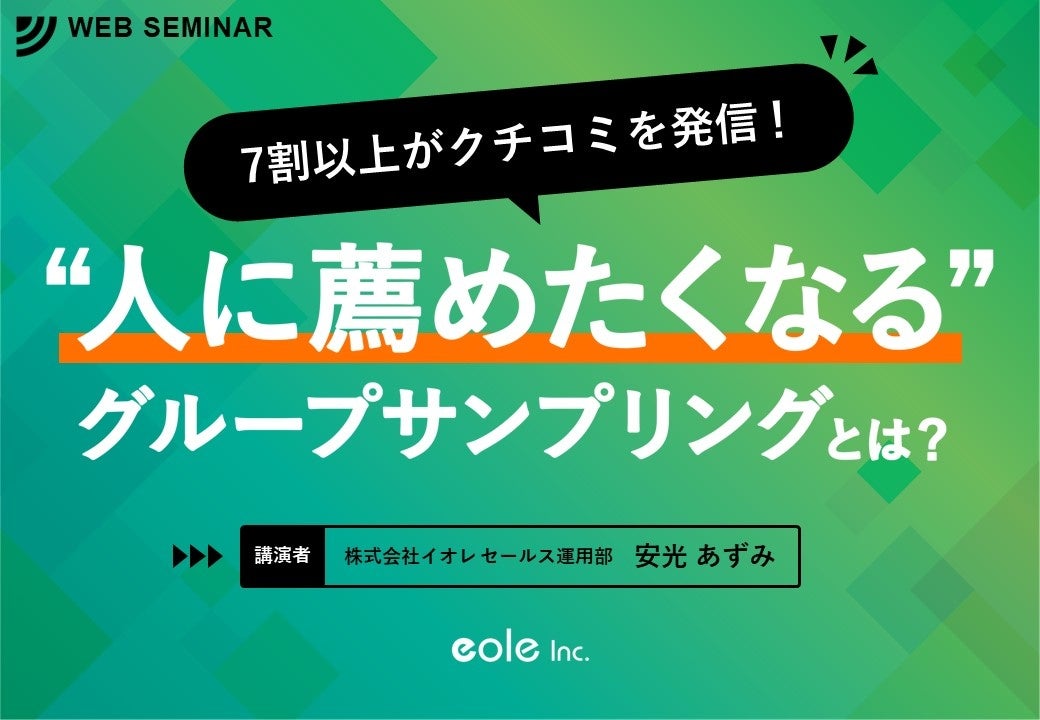 【1月25日(火)15:00~】ご好評につき再度セミナー開催!7割以上がクチコミを発信!人に“薦めたくなる”グループサンプリングとは?