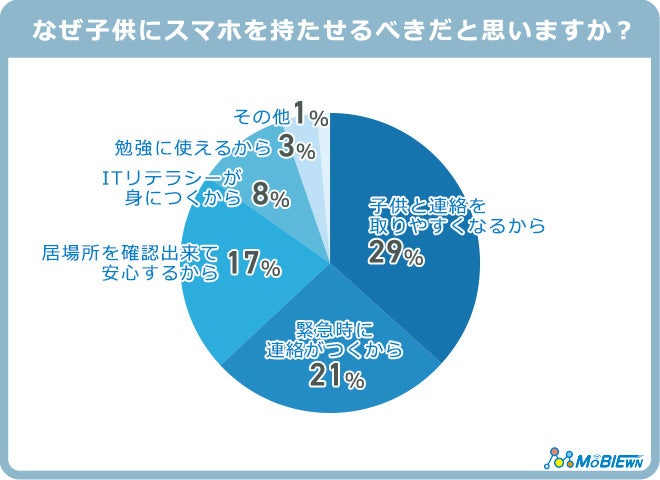 「なぜ子供にスマホを持たせるべきか」を調査したところ、「子供と連絡が取りやすくなるから」と回答した方が最も多く、29%を記録しました。