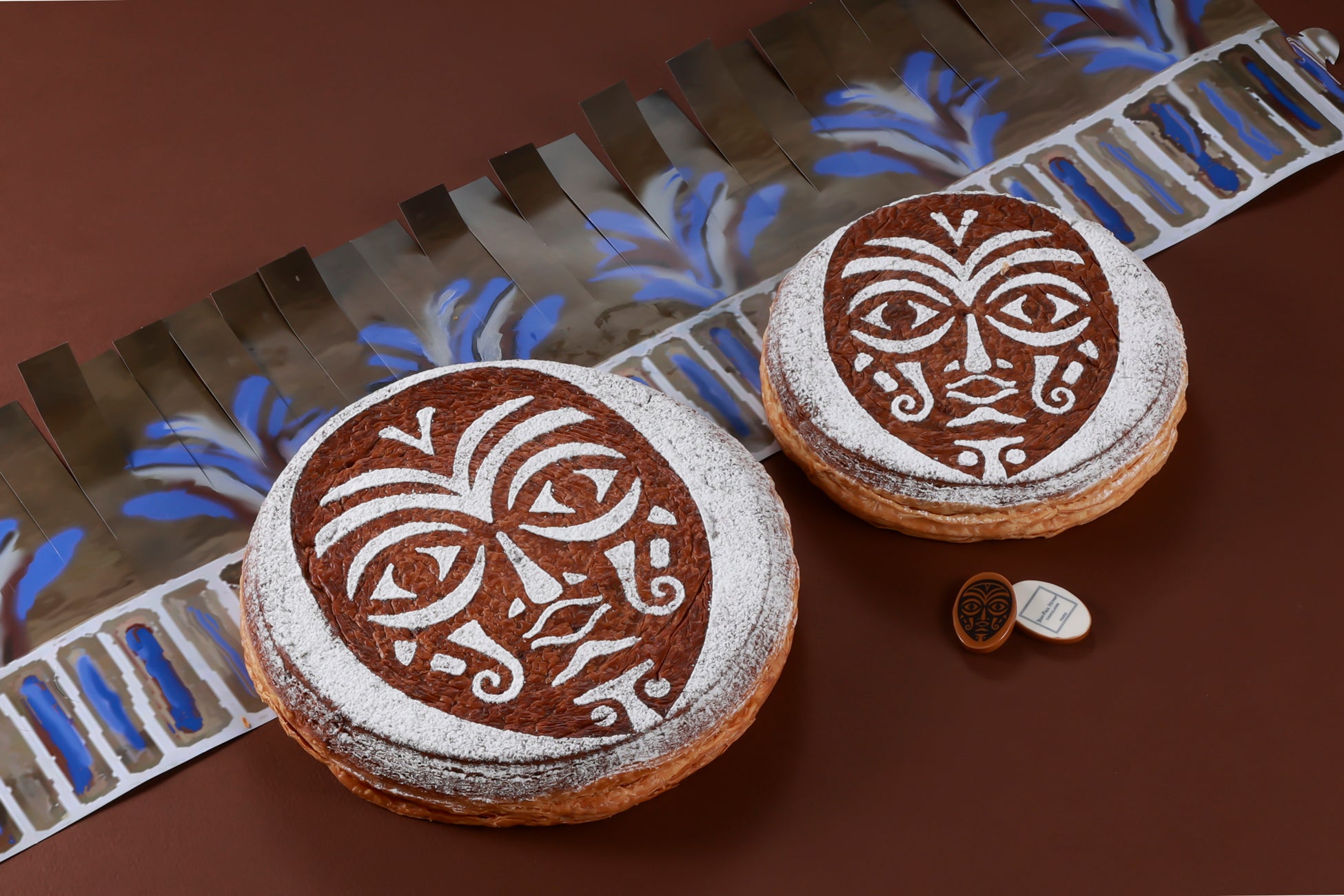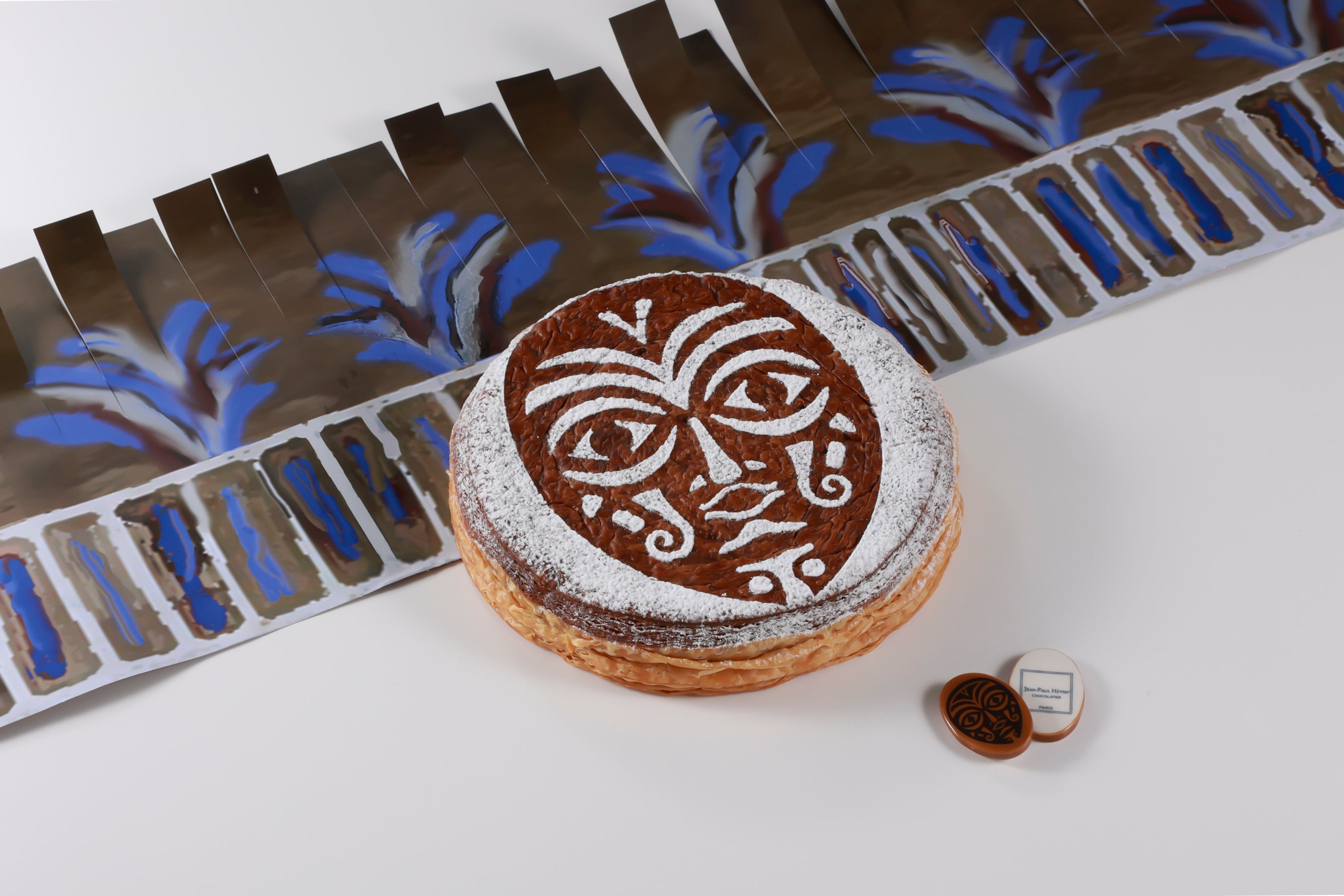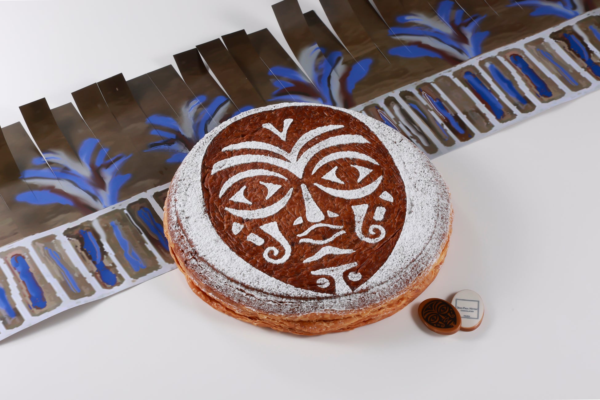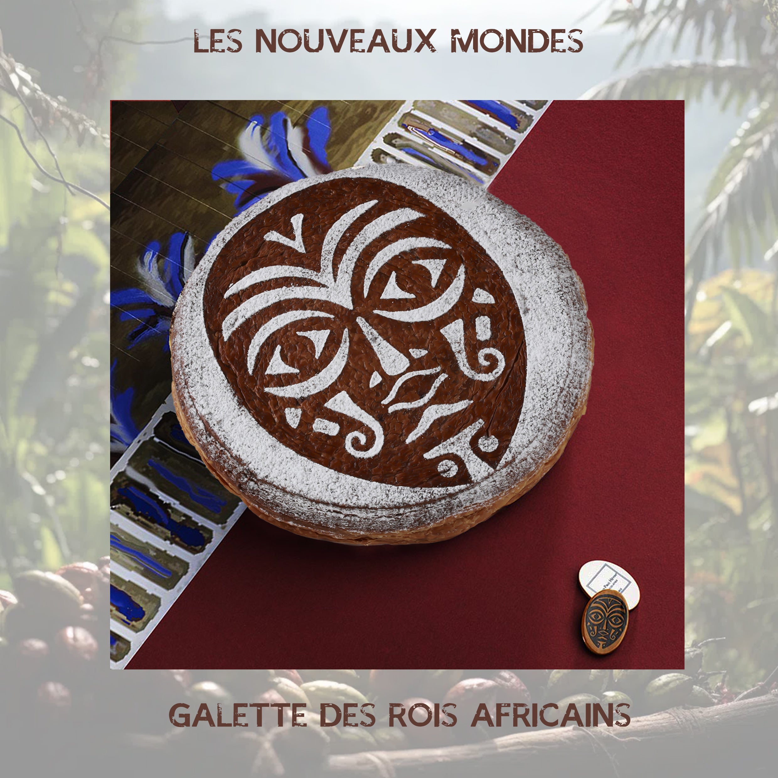 2024-2025年のコレクションテーマ 《LES NOUVEAUX MONDES (新しい世界)》 のもと、ジャン=ポール・エヴァンは私たちを<新しい世界>へ向かう旅に誘います。<新しい世界>の伝統と文明を発見する旅をイメージした「ガレット デ ロワ アフリケン」。フェーヴと王冠は、カカオの採れる大地の先住民族をイメージしたデザインです。