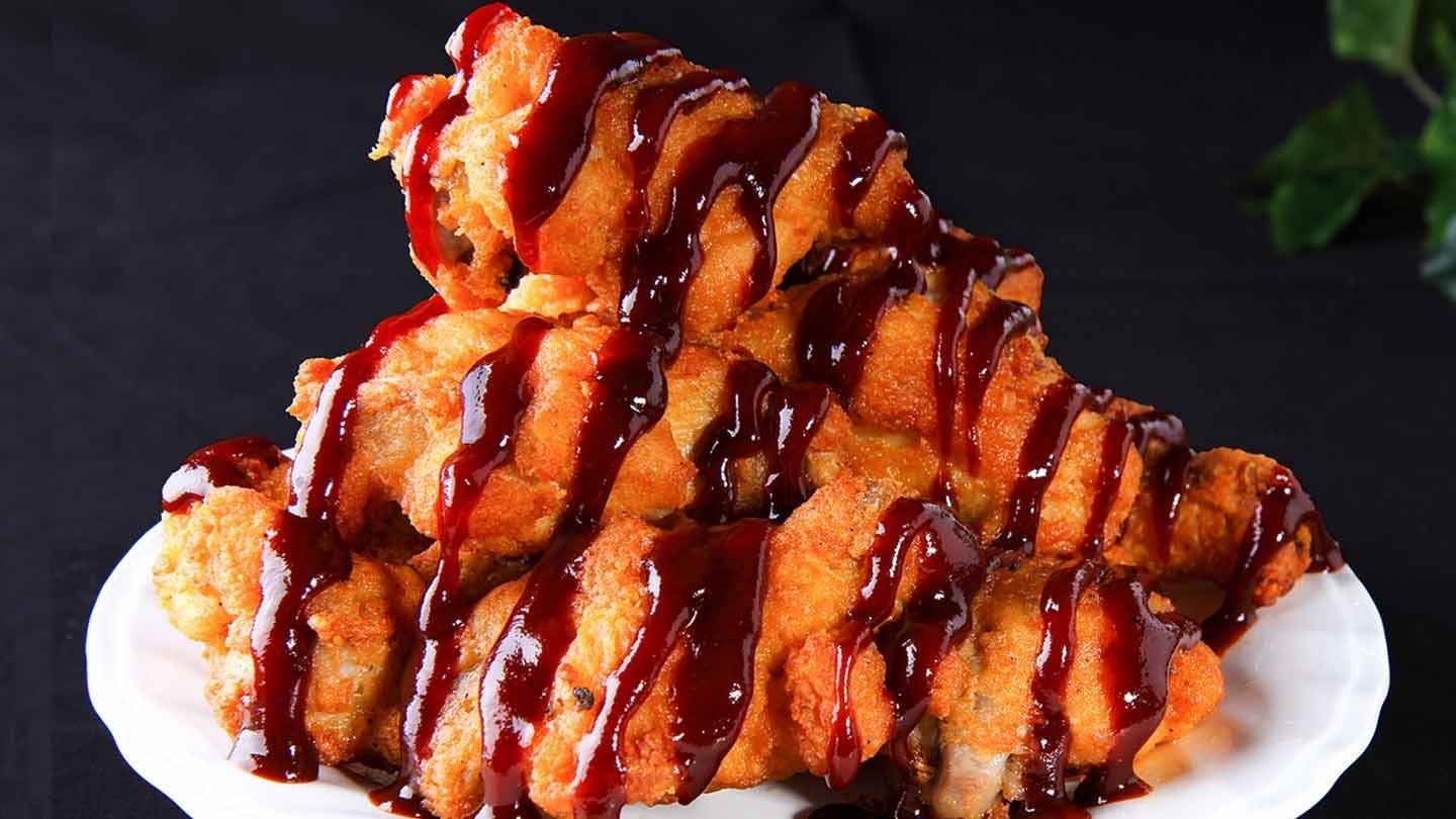 後引く辛さでついついもう一本が欲しくなる、秘伝のスパイスで味付けをした骨付きフライドチキンです。