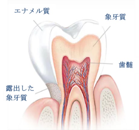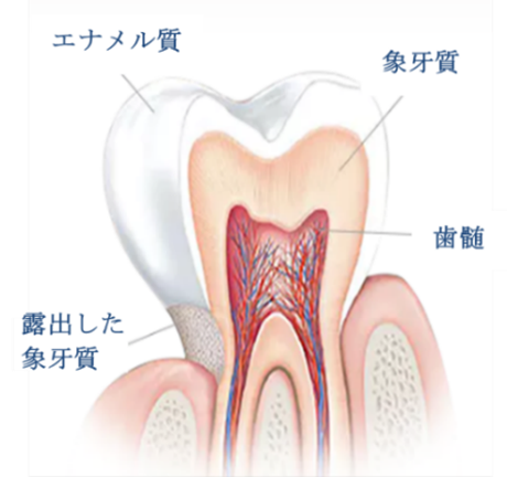 1.歯のエナメル質がすり減るなどの原因により象牙質が露出する