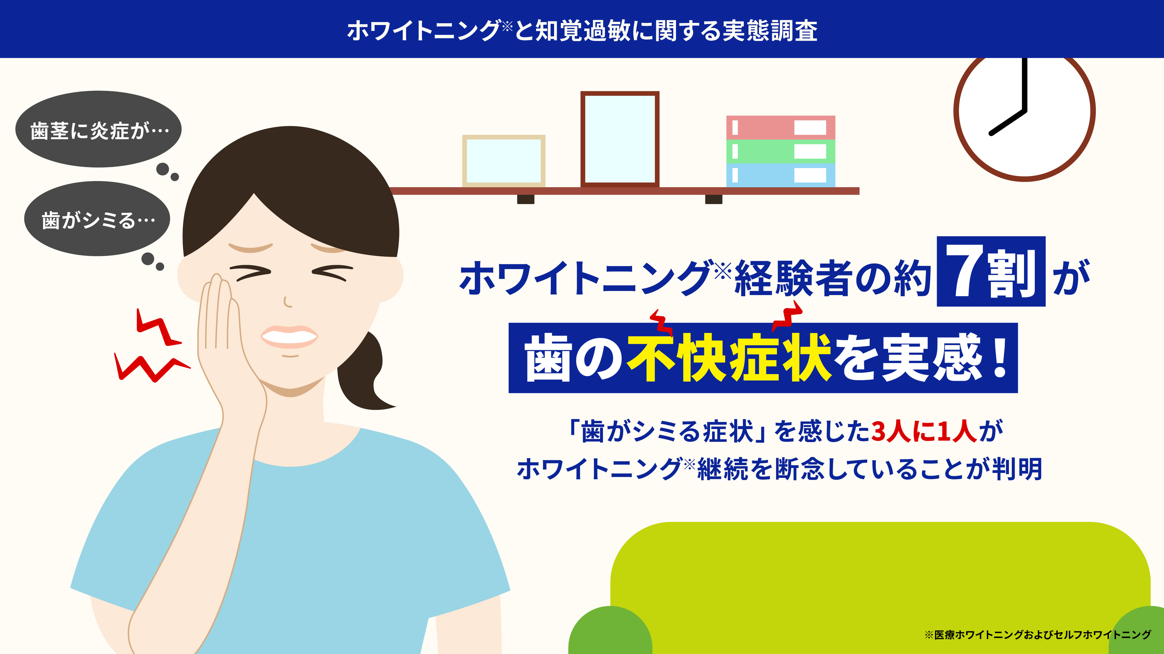 「歯がシミる」知覚過敏症状経験者の3人に1人が痛みにより歯のホワイトニング※の継続を断念していることが判明。“知覚過敏症状”が理想的な白さを叶える障壁に。