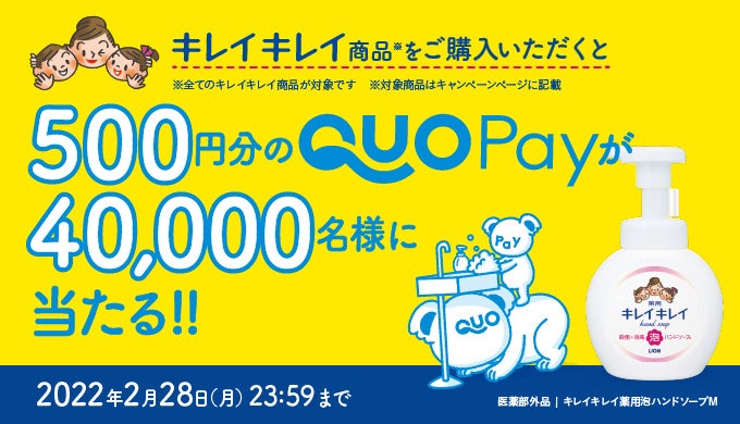 【ライオン×QUOカードPay】 『キレイキレイ』商品を購入すると、QUOカードPay500円分が40,000名様に当たるキャンペーン 2月1日(火)より開催!