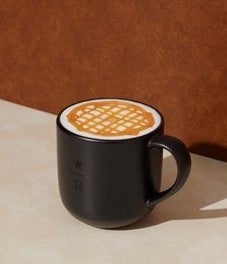 バニラフレーバーシロップとスチームミルクのコンビネーションになめらかなフォームミルクをのせ、その上からエスプレッソのダブルショットを注いでアクセントを付けました。仕上げにスターバックス リザーブで取り扱うキャラメルソースをトッピングしています。