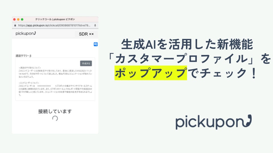 顧客分析に特化したAI電話pickupon、生成AIを活用した顧客情報をポップアップにて確認可能に!