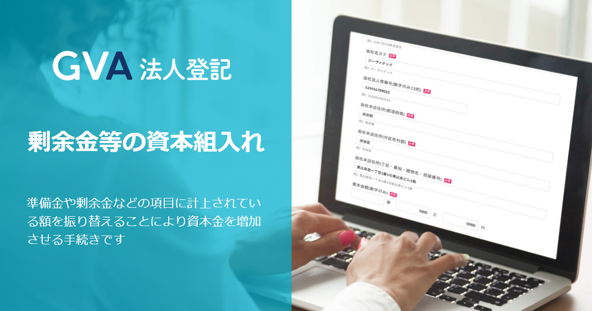 リーガルテックサービスの開発・運営を行うGVA TECH株式会社(本社:東京都渋谷区、代表取締役:山本 俊)は、オンライン商業登記支援サービス「GVA 法人登記」にて、新たに「剰余金等の資本組入れ」に対応したことをお知らせいたします。