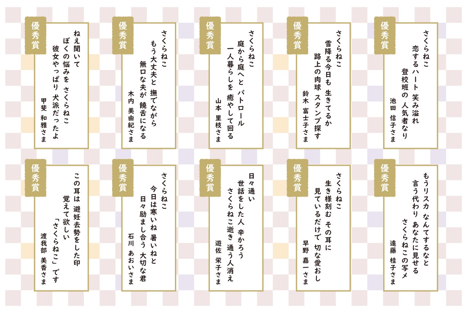 『さくらねこ短歌コンテスト』は今回が2回目の開催となります。初開催となった前回は予想を上回る1,654首のご応募があり、どの作品も五・七・五・七・七の三十一文字に猫たちへの想いや愛が詰め込まれた良作ぞろいで審査は難航を極めましたが、大賞、各審査員賞、優秀賞の15首が選ばれました!