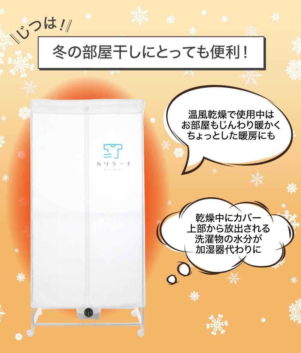 【プチ暖房×加湿効果も!】寒い冬の洗濯物もヒーター温風でふっくら!冬の家事を快適にする大好評の室内衣類乾燥機「カワクーナL」が楽天市場にて新規生産分が入荷しました!