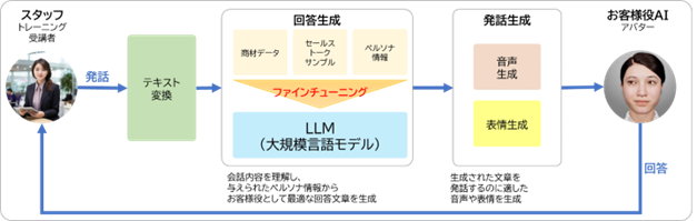 今般、LLM(大規模言語モデル)を活用し、AIがお客様役となることでトレーニング効率を向上させるバーチャル顧客機能”mimik NEST“のさらなる機能強化について、AWSの生成AIサービスであるAmazon Bedrockの活用検証に着手いたしましたのでお知らせいたします。