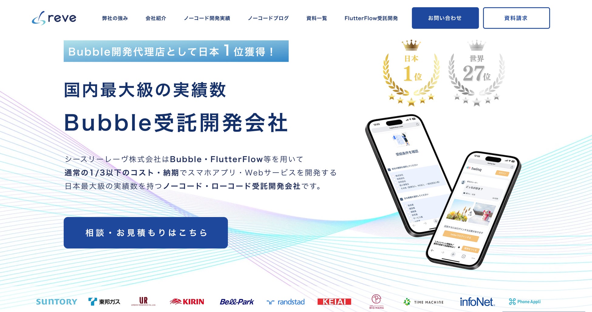 シースリーレーヴ株式会社は、Bubble・FlutterFlowなどのノーコード開発を行う、日本最大級のノーコード受託開発会社です。