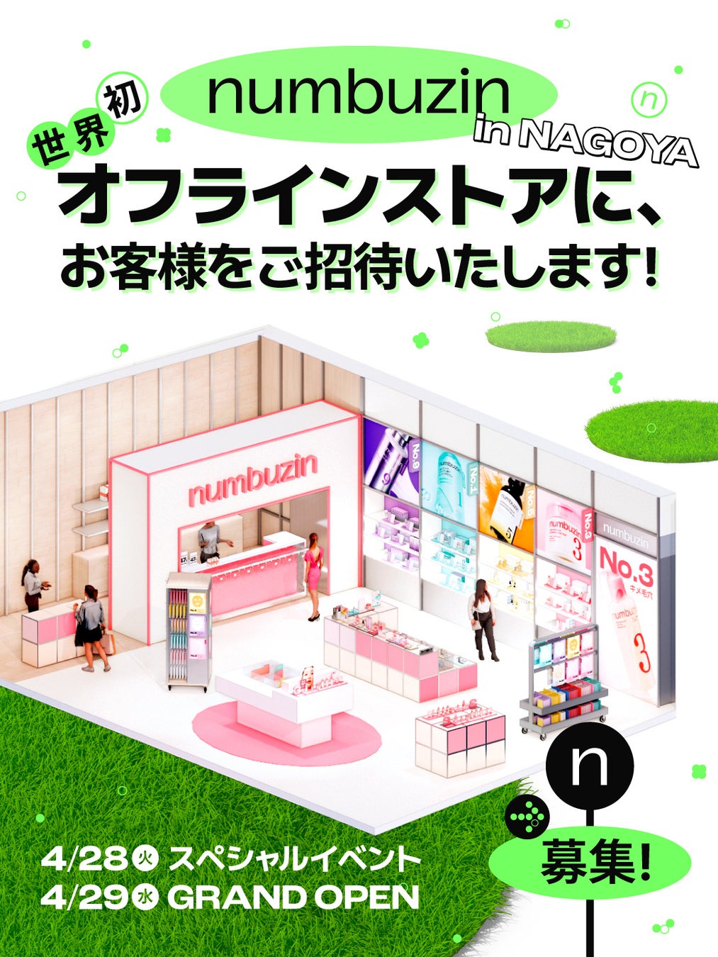 株式会社BENOW JAPAN (日本支社所在地:東京都新宿区、代表取締役:金 大栄)が展開するスキンケアブランド「numbuzin(ナンバーズイン)」は、2026年4月29日(水)に日本初のオフラインストア「numbuzin mozoワンダーシティ」を名古屋にてオープンいたします。