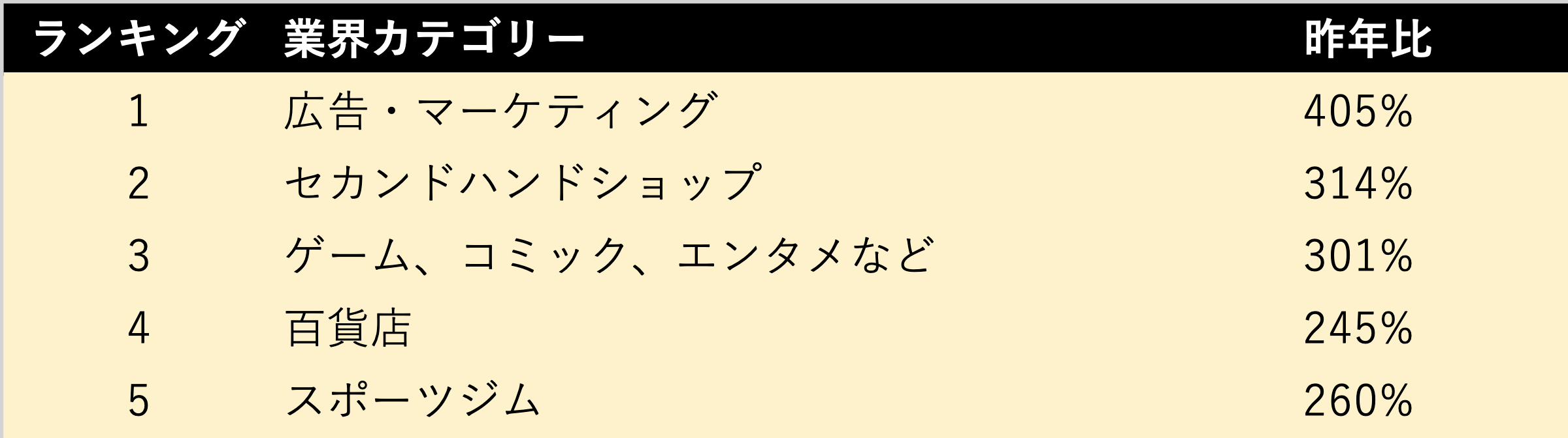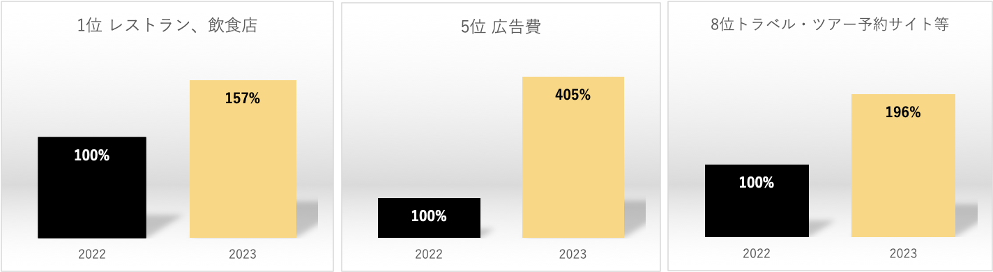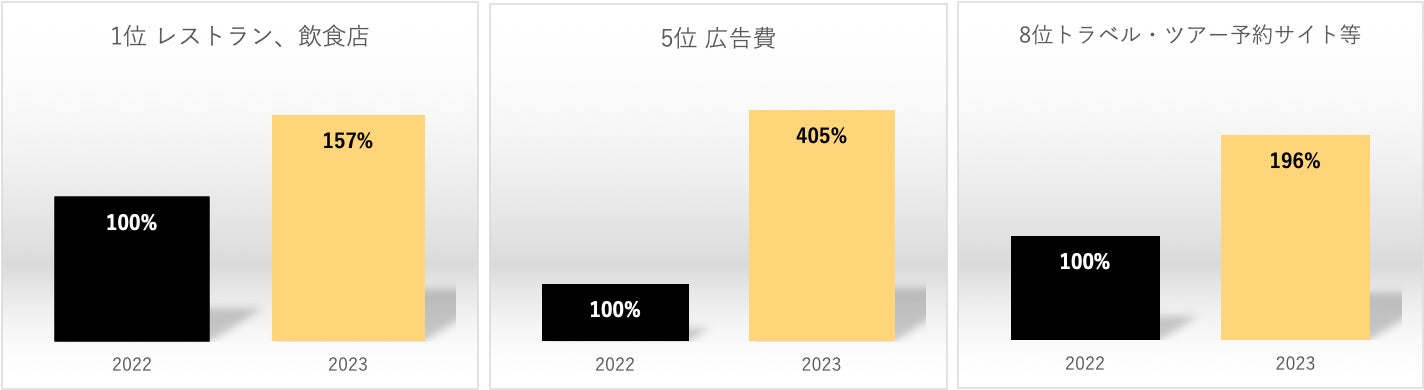 ・2022年にランキング外だった広告費が5位に入り、利用金額も前年の4倍以上と各社のマーケティング活動が活発化と推測。