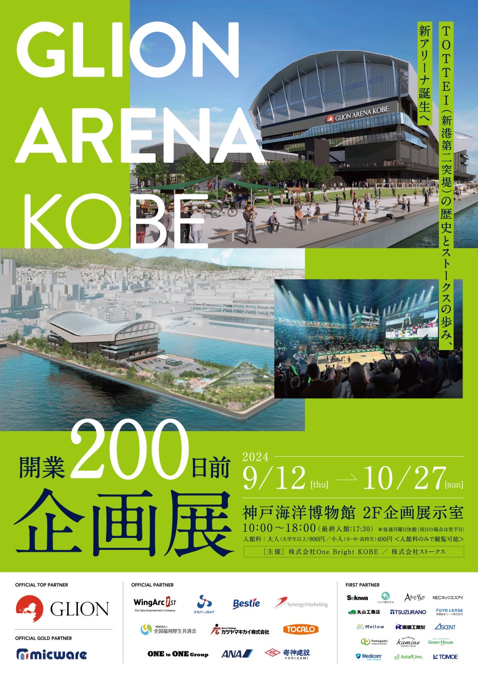 開業200日前を記念した本企画展では、TOTTEIが位置する神戸ウォーターフロントのこれまでの歴史や、「GLION ARENA KOBE(ジーライオンアリーナ神戸)」を新ホームアリーナとする「神戸ストークス」の歩みを展示いたします。このほか、新たな観戦体験を提供する次世代アリーナに導入される座席シートを先行体験できるコーナーやストークスのユニフォーム展示等も予定しています。