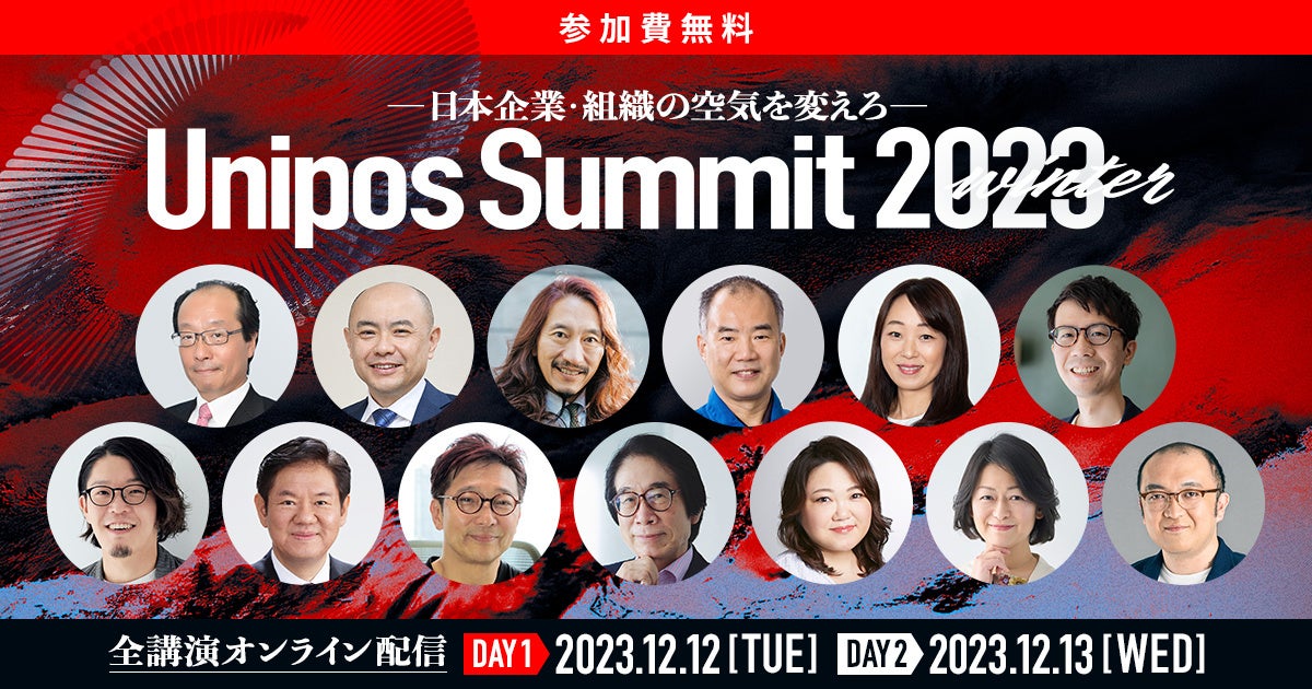 前回申込者8500名超えの経営・人事向けオンラインカンファレンス「Unipos Summit 2023 winter~日本企業・組織の空気を変えろ~」2023年12月12日・13日