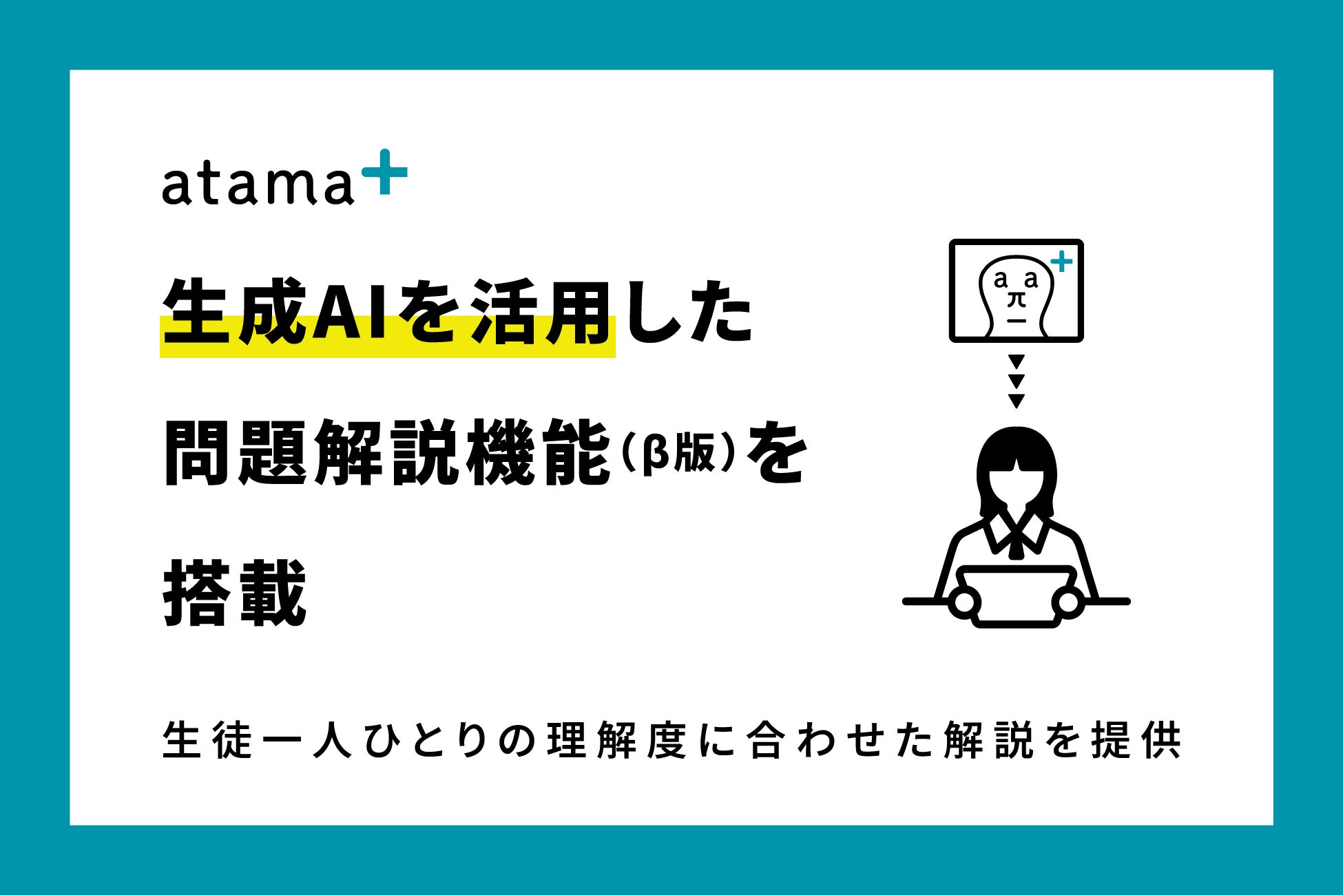 atama plus株式会社(本社:東京都文京区、代表取締役CEO:稲田 大輔、以下atama plus)は、AI教材「atama+(アタマプラス)」に生成AIを活用した問題解説機能「AIステップ解説(β版)」を搭載し、直営塾にて検証を開始したことをお知らせします。生徒一人ひとりの理解度に合わせて段階的に解説を行うことで、生徒の学習体験を向上させることを目指します。