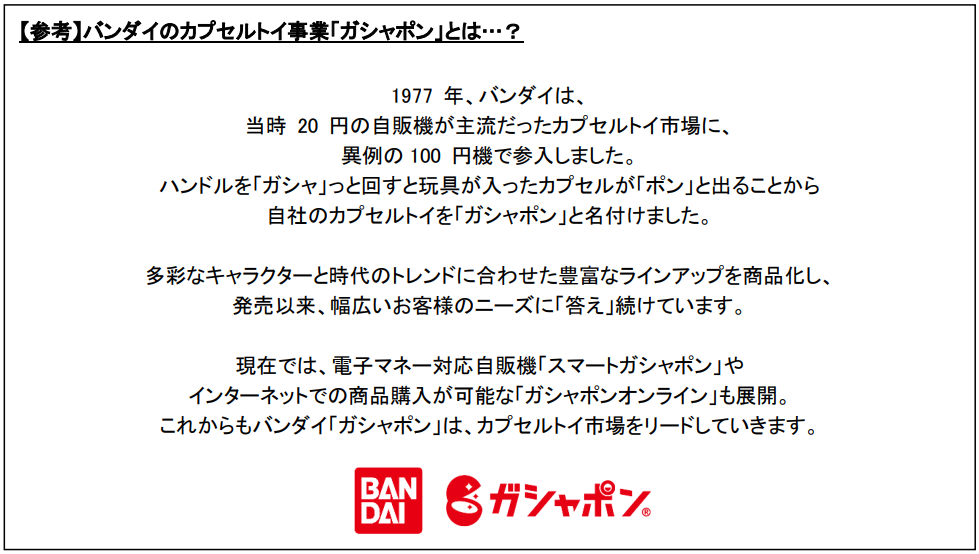 ※「ガシャポン」はバンダイの登録商標です。