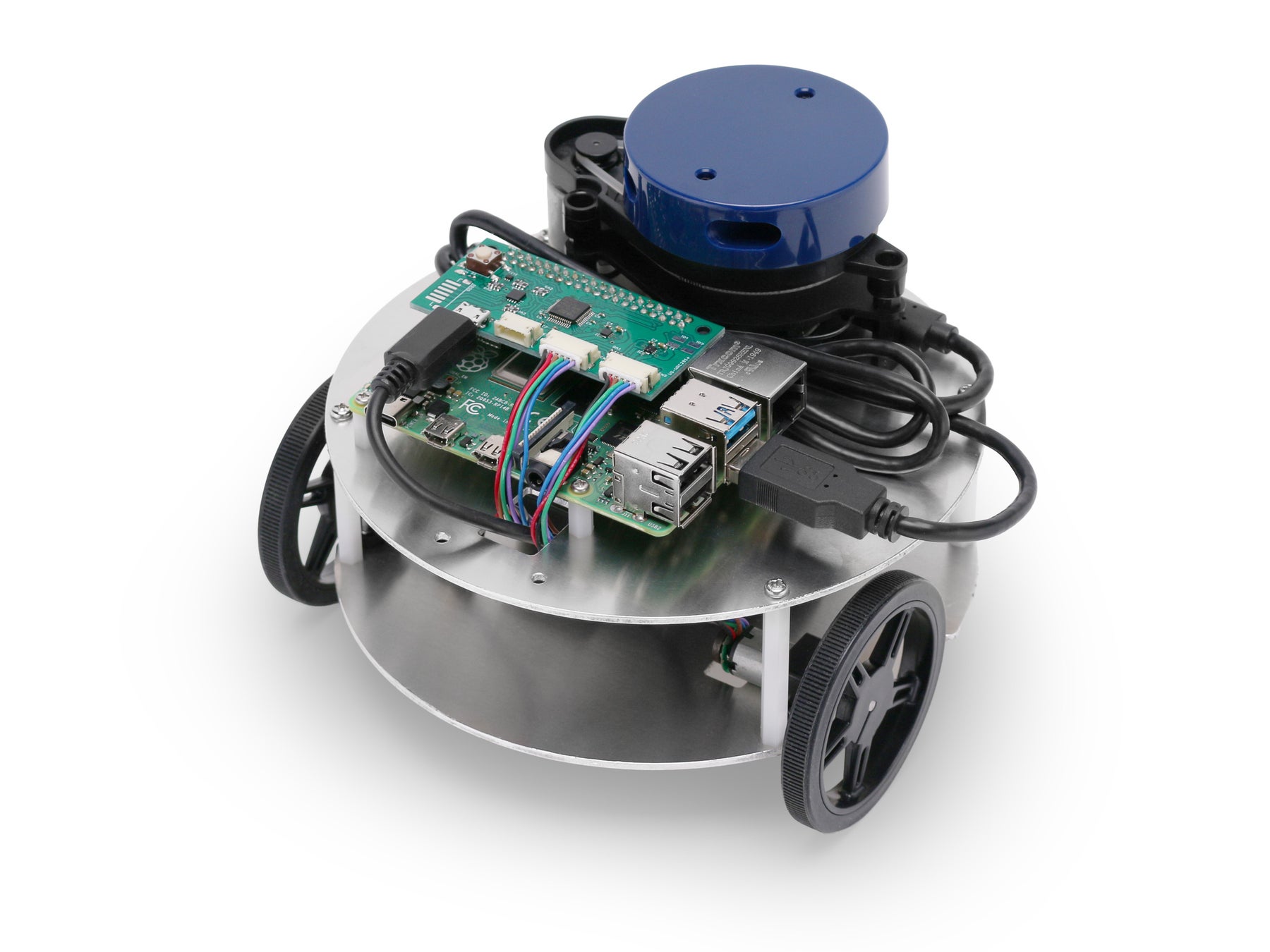ライトローバーには、小型の筐体ながら、RAM容量4GB版のRaspberry Pi 4 Model Bと小型のLiDAR(LRF)が標準搭載されています。現代的な台車ロボットの自律制御においては、以前にも増して演算能力が求められていますが、Raspberry Pi 4はそのニーズに十分に応えるプロセッシングスピードを提供します。LiDAR(LRF)は、昨今のスマートフォンや家電機器などにも搭載が進んでおり、高度化するロボティクス制御においては今後ますます重要性が増すデバイスであると考えられます。