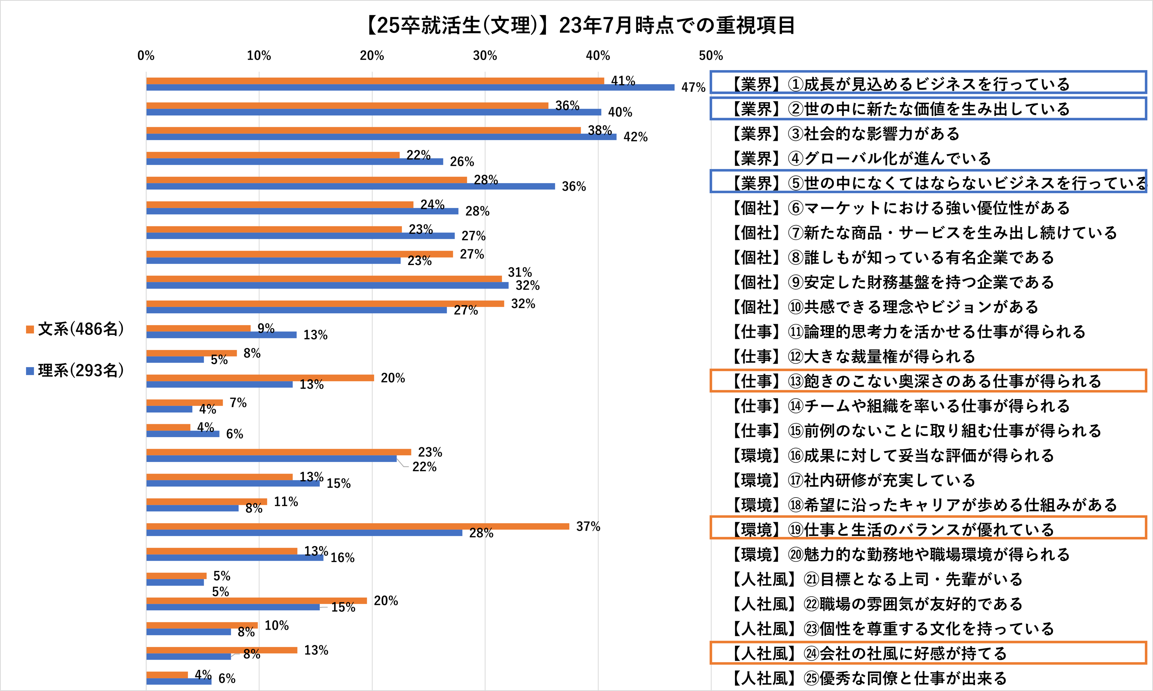 “働き方・社風重視”の文系、“成長性に注目”の理系