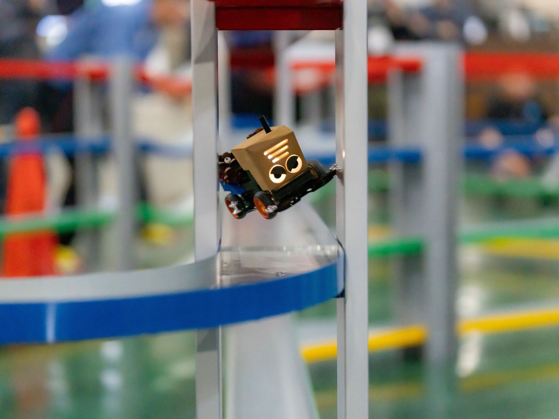 モノづくりのプロや、ものづくりが大好きな学生さんが集結し、自社・自分の技術を一つ以上取り入れた”車体改造アリのミニ四駆”を製作し、専用コースでレースを行います。審査項目は、競技タイム・競技車の技術表現力・競技車のデザイン力(美観)。専用コースには、ジャンプ台や壁面の継ぎ目や柱などの難所が用意されており、ただ速いだけでは勝利できません。