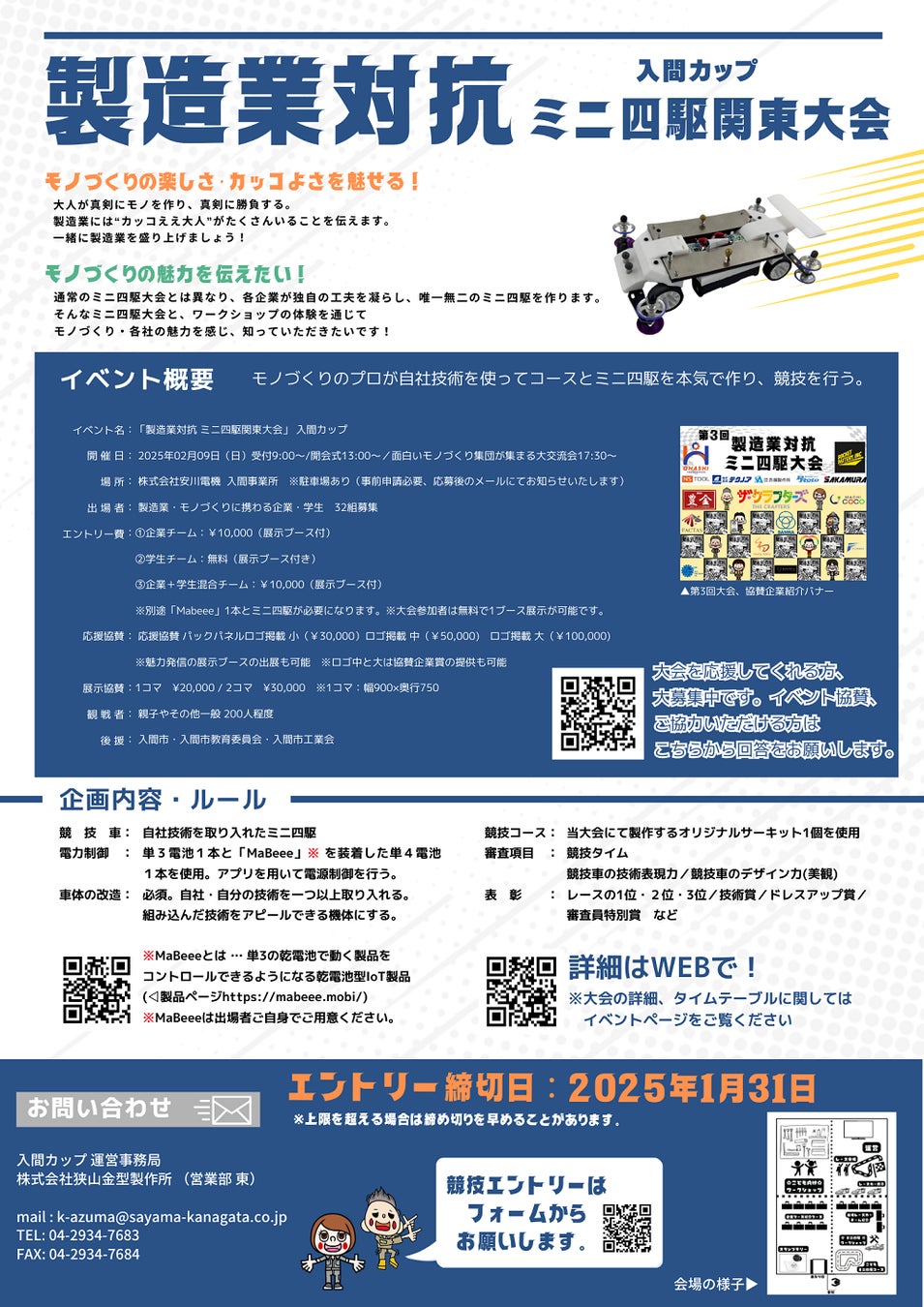 主催 製造業対抗ミニ四駆関東大会入間カップ実行委員会(株式会社狭山金型製作所(内))