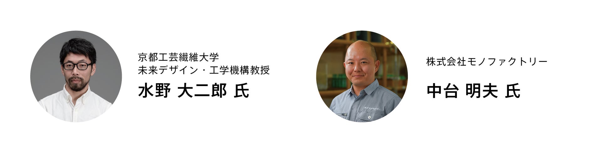 コンテンツのキュレーションサポートとして、サーキュラーデザインへの造詣の深い、水野 大二郎 教授(京都工芸繊維大学 未来デザイン・工学機構)と循環ビジネス構築等を手がける株式会社モノファクトリーの中台 明夫氏が当展覧会を監修しています。