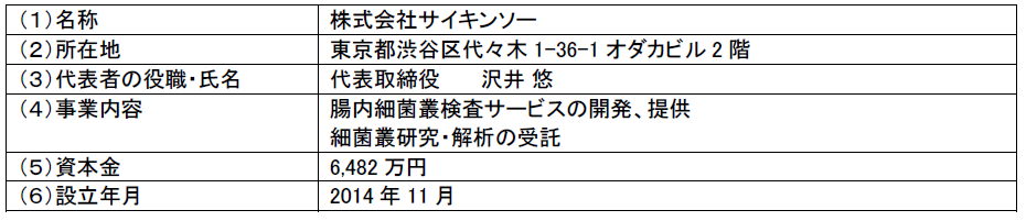 身体の細菌叢を解き明かすことによるヘルスケアへの貢献に向けて、個人向けの細菌叢検査を実施する株式会社サイキンソーへ出資