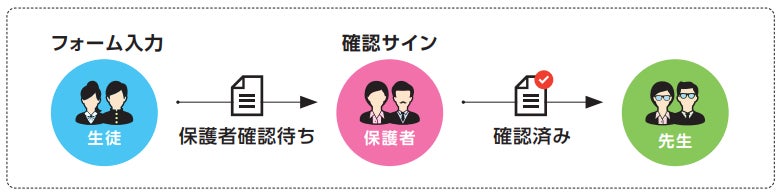 本機能は、昨年下半期から131校でトライアル活用、現在申し込みは300校を越えており、既に機能を利用している学校からは、実際に申請・提出→情報のアップデートと管理にかかっていた業務時間を5割減少させられたため、先生が生徒に向き合う時間を捻出できたという声も上がっています。