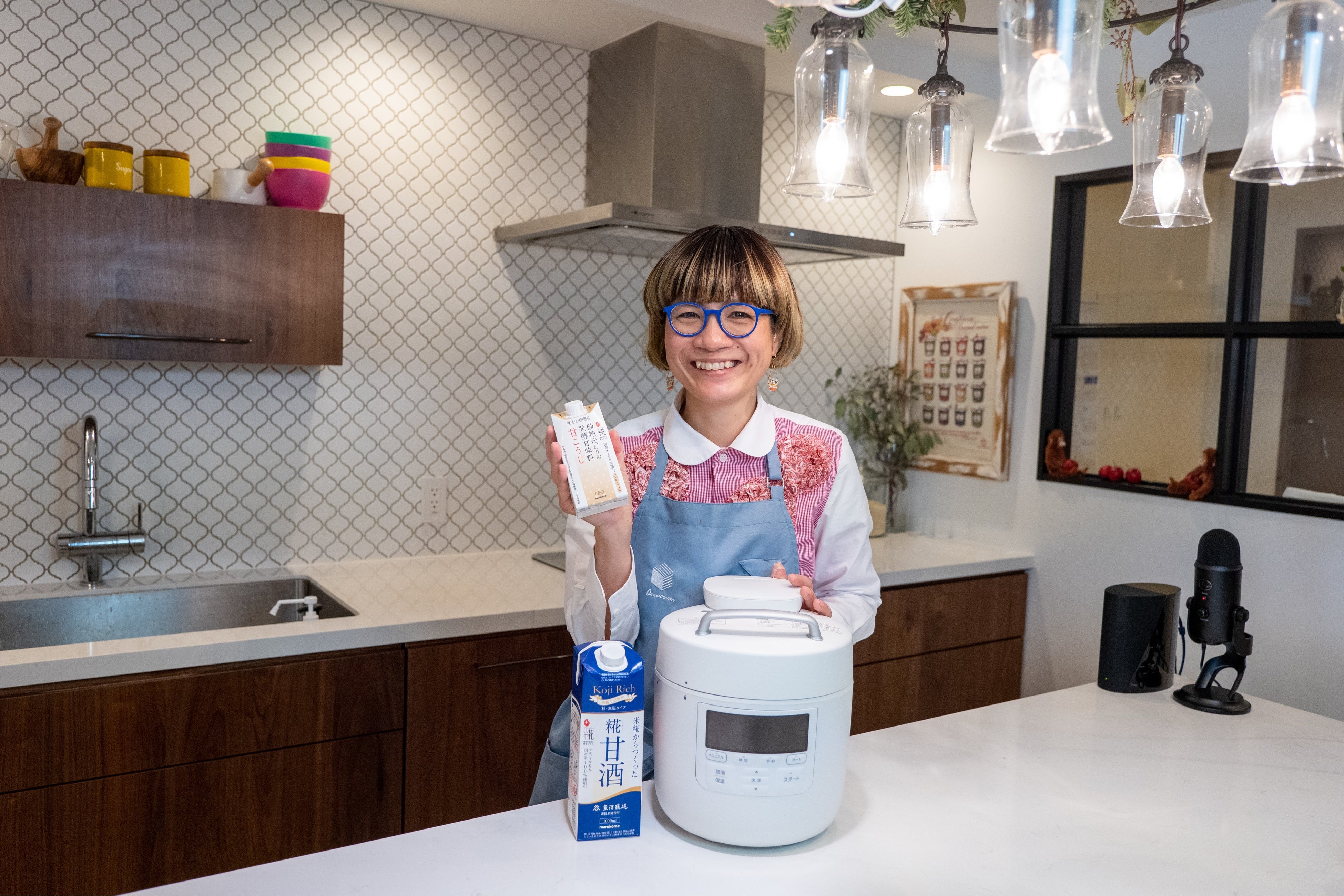 シロカ株式会社(東京都・千代田区)は、発酵食品を多く取り扱うマルコメ株式会社、料理体験共有アプリ「SnapDish」を運営するヴァズ株式会社と3社共同で、「甘酒の日」にちなんだイベントを2022年1月13日に開催しました。人気フードコーディネーターのあまこようこ先生を講師としてお迎えし、マルコメの「糀甘酒」とシロカの電気圧力鍋「おうちシェフPRO」で作る、「素材丸ごと甘酒煮」をご紹介したオンラインイベントの様子をレポートします。