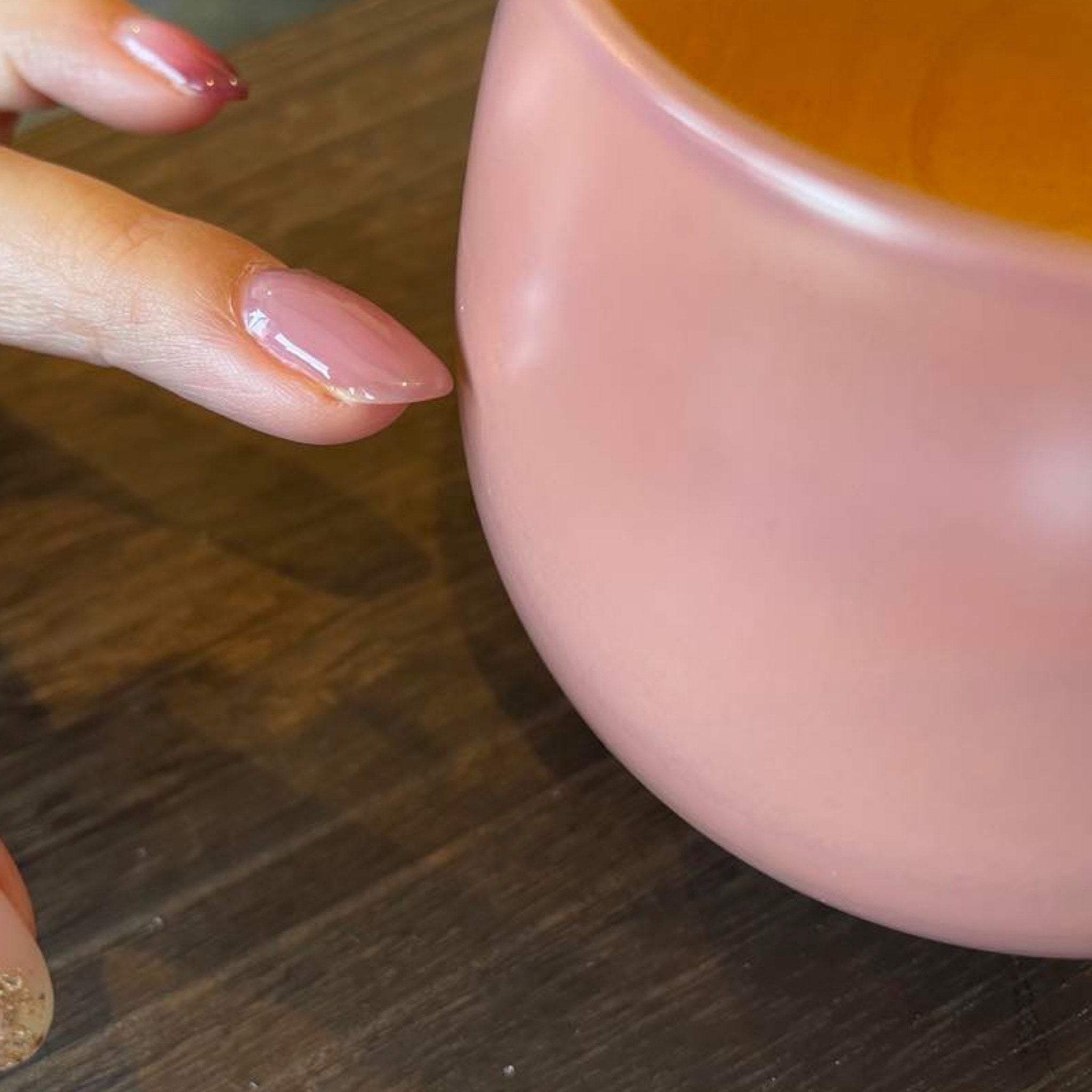 伺った日のディレクターのネイルはまさに、深い桜色。器と色もぴったり。