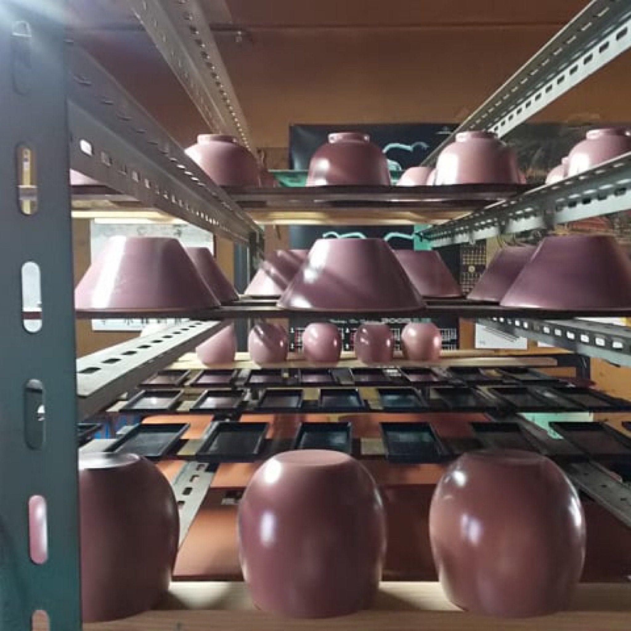 当初はベージュ系で試作し、現地女性スタッフとディスカッションするものの、「この色だったら他にもありそう」とリセット状態に。悩むディレクターにエーデパ社長の「思いきって個性のある、自分の好きな色にした方いいんじゃないのかな」の一言をきっかけに、「こんな色の器で食事をしたら美味しく感じるだろうなぁ」とダークピンク、深いピンク色を思いついたそう。